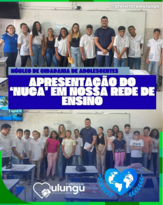 Aconteceu hoje a apresentação do Núcleo de Cidadania de Adolescentes – NUCA – em nossa rede de ensino, um momento marcante que reforça o compromisso do município com a formação cidadã de nossos jovens. Durante o encontro, adolescentes participaram de rodas de diálogo, escuta ativa e construção coletiva de ideias, fortalecendo o protagonismo juvenil e… Continue lendo Formando Jovens Protagonistas em Mulungu!