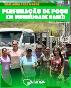 Água é vida!E é por isso que a Prefeitura Municipal de Mulungu segue firme no compromisso de levar mais qualidade de vida para o nosso povo. Nesta semana, foi realizada a perfuração de um poço na localidade de Mumbuca De Baixo, um importante avanço que garante maior acesso à água para as famílias da comunidade.… Continue lendo Perfuração De Poço em Mumbuca de Baixo